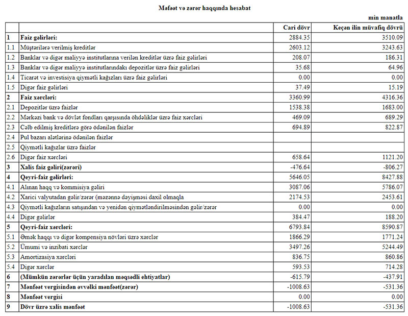 Marja Bankın maliyyə göstəricilərinə istinadən xəbər verir ki, 2020-ci ilin yanvar-mart dövründə “AGBank”ın cəmi əməliyyat gəlirləri 8 milyon 530 min manat, cəmi əməliyyat xərcləri isə 10 milyon 154 min manat təşkil edib. Xərclər gəlirləri üstələdiyindən Bankın 1 milyon 624 min manat əməliyyat zərəri yaranıb. Mümkün zərərlər üçün yaradılan məqsədli ehtiyatlardan 616 min manatın azad olması hesabına zərər 1 milyon 8 min manata düşüb.