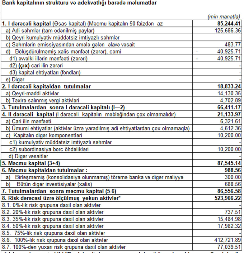 Martın sonunda Unibank 86 milyon 556 min manat məcmu kapitala malik olub.