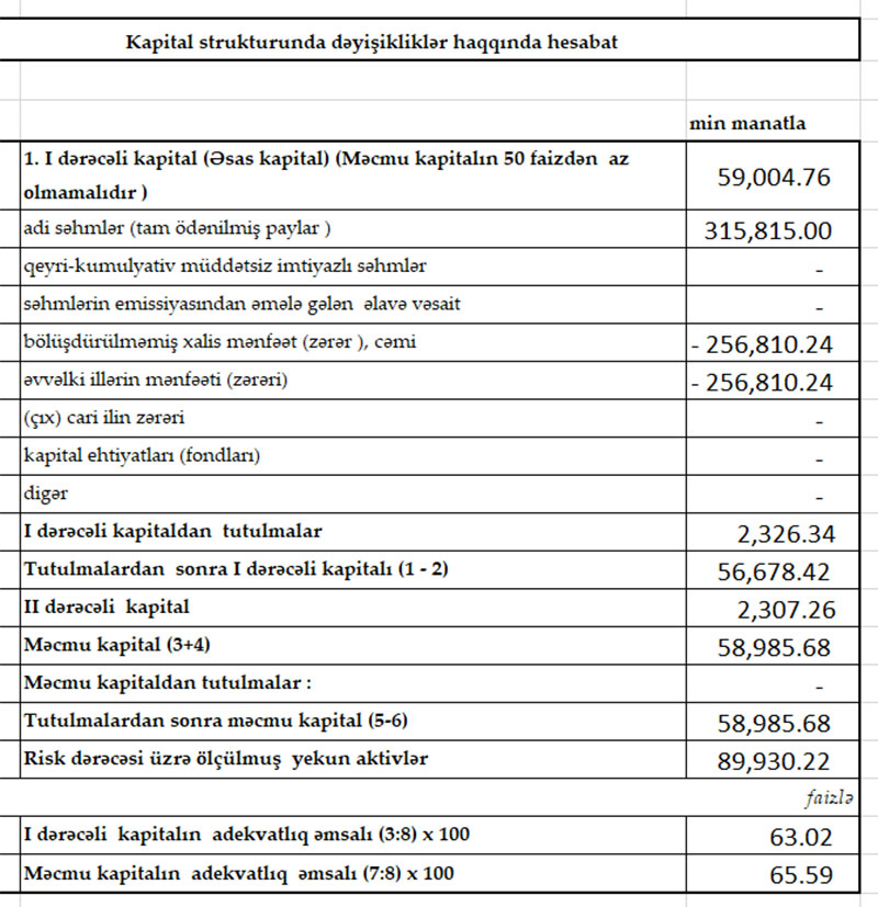 31 Mart 2020-ci il tarixində Bank 255 milyon 411 min manat yığılmış zərərə malik olub.