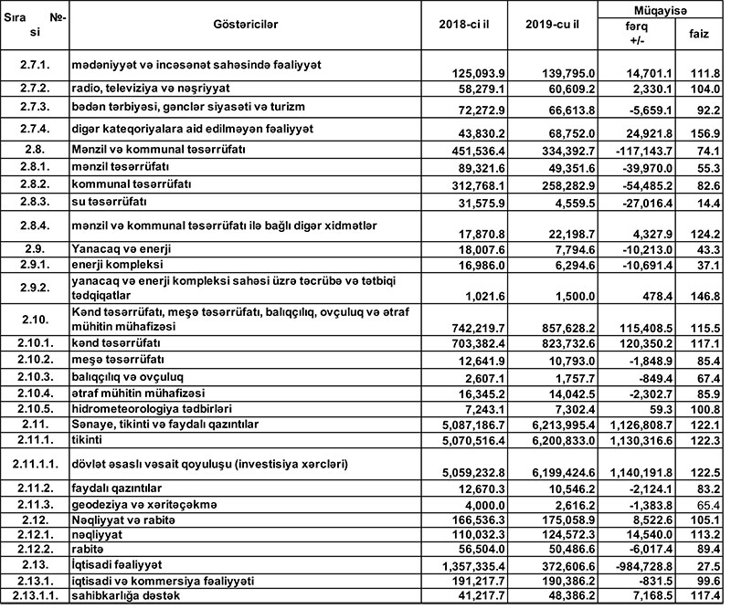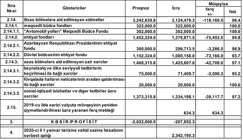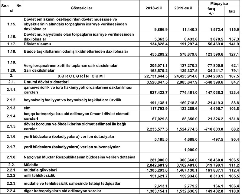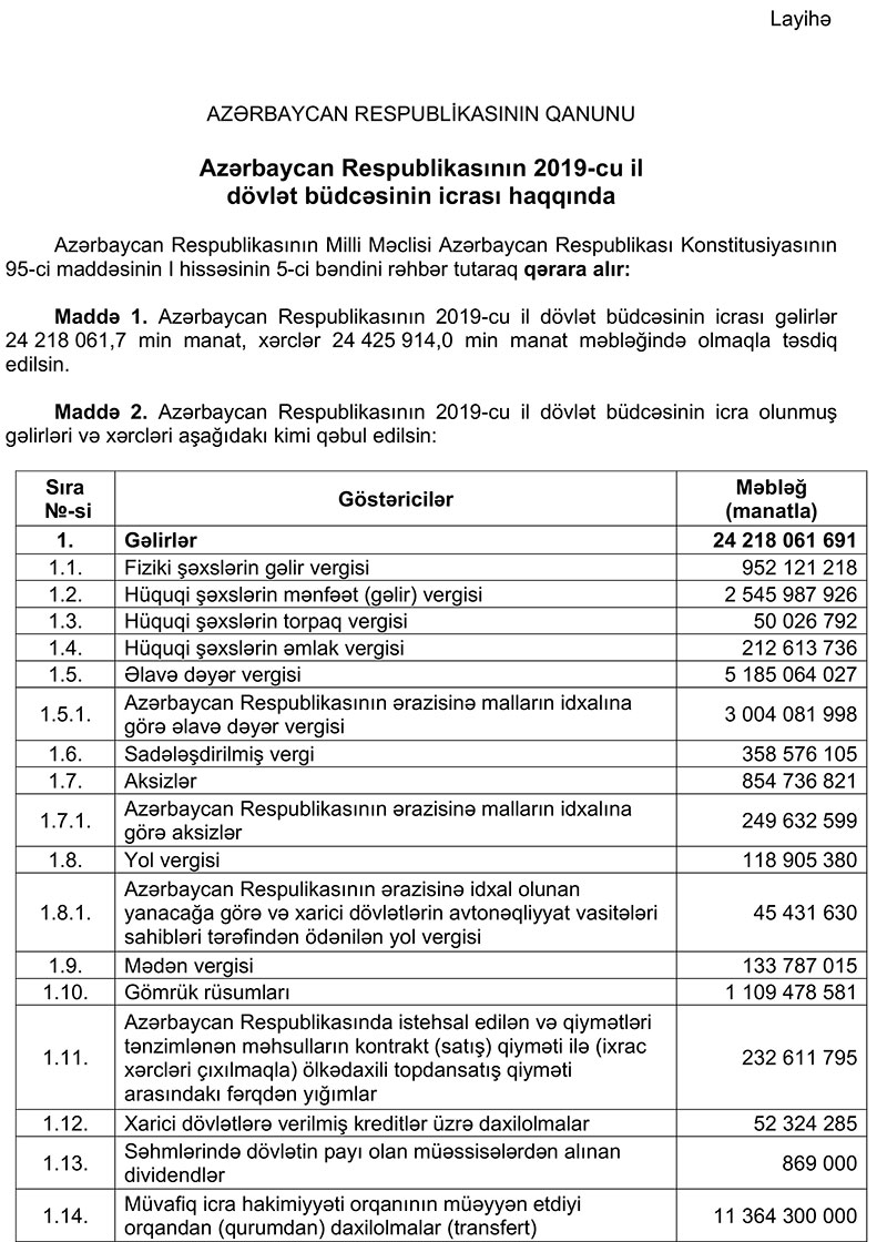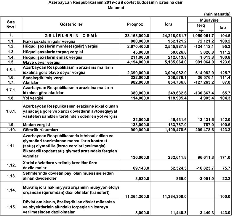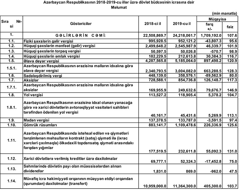 2019-cu il dövlət büdcəsinin icrasında dair məlumat