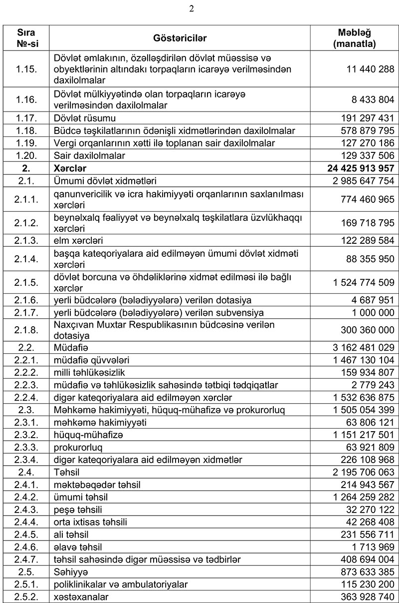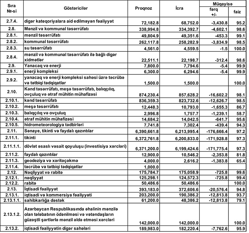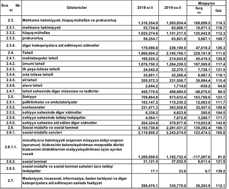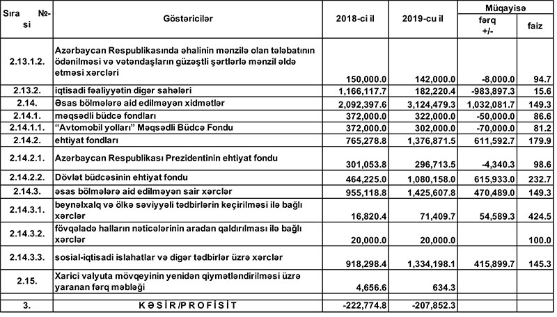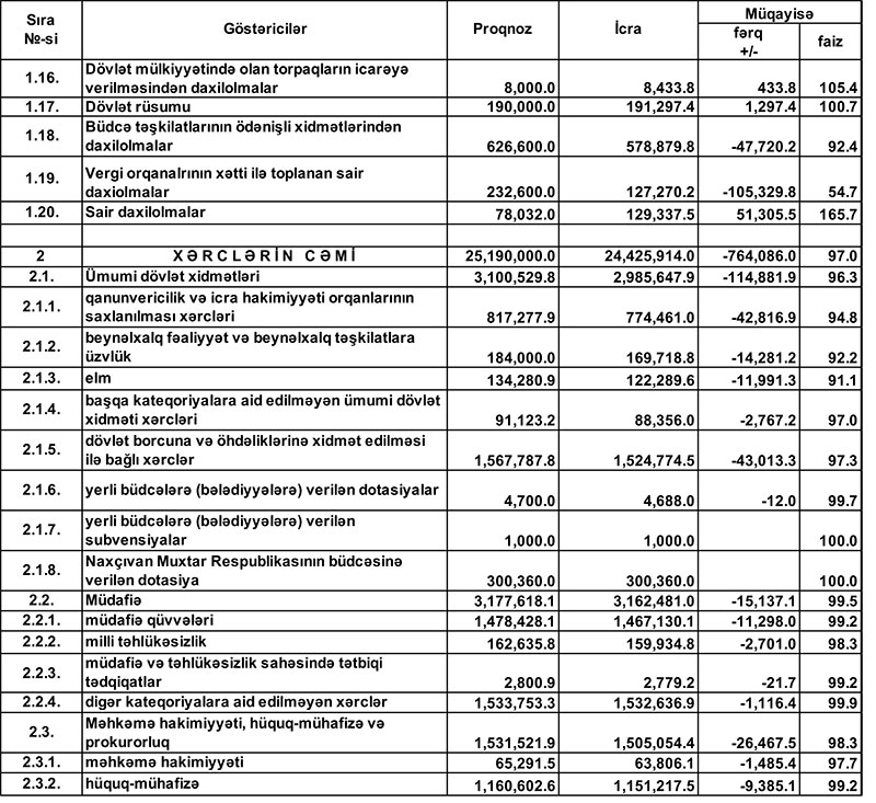 2019-cu il dövlət büdcəsinin icrasında dair məlumat