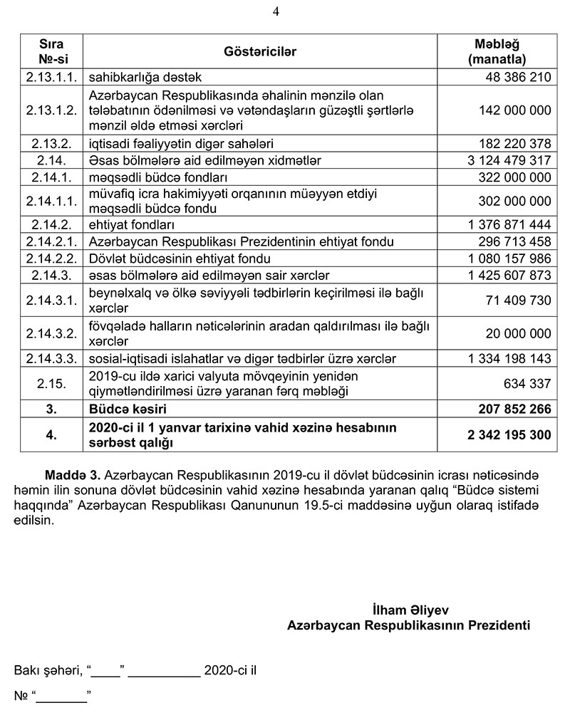 Xəbər verdiyimiz kimi, 2019-cu il dövlət büdcəsinin icrası haqqında Azərbaycan Respublikasının Qanun layihəsi və 2019-cu il dövlət büdcəsinin icrası barədə hesabat Azərbaycan Respublikasının Prezidenti tərəfindən Azərbaycan Respublikası Milli Məclisinə təqdim olunub.