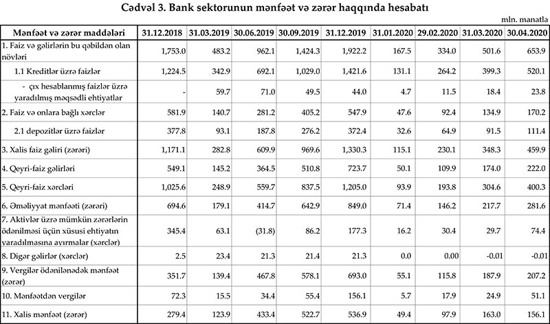 2020-ci ilin ilk 4 ayında Azərbaycanın bank sektorunun xalis mənfəəti 156,1 milyon manat təşkil edib.