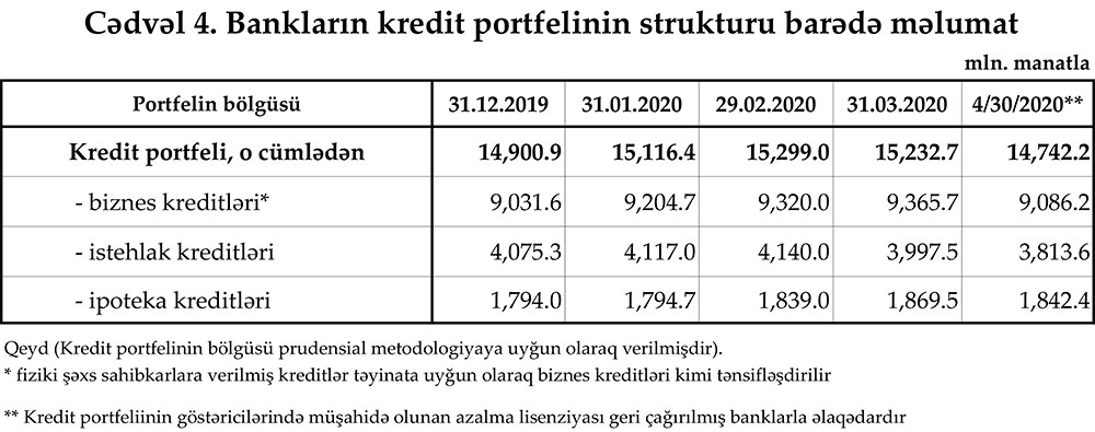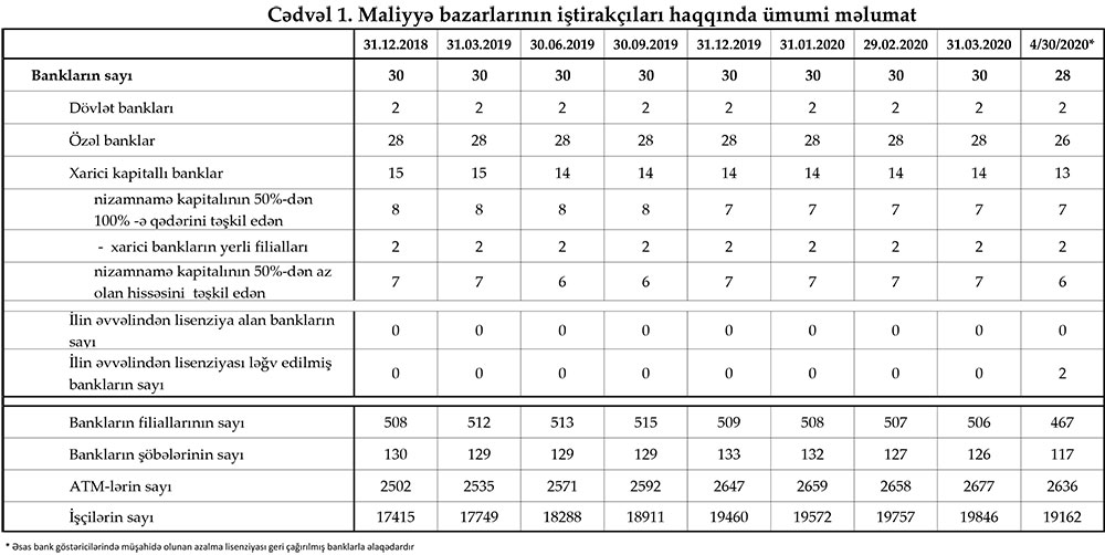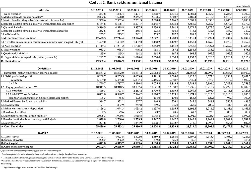 Mərkəzi Bank 30 aprel 2020-ci il tarixinə olan bank sektorunun əsas göstəricilərini açıqlayıb.
