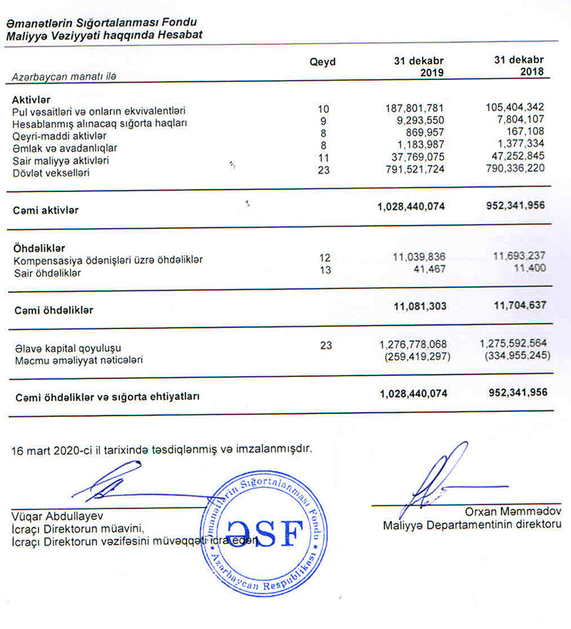 Əmanətlərin Sığortalanması Fondu bu il də mənfəət-zərər göstəricilərini açıqlamadı