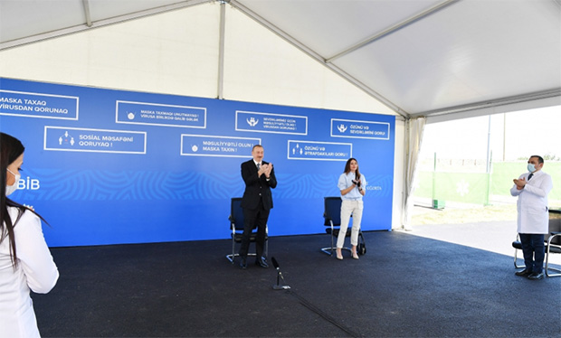 Bundan sonra videobağlantı vasitəsilə 1 saylı Sumqayıt şəhər xəstəxanasına və Abşeron rayonundakı Saray qəsəbə xəstəxanasına təhkim edilən modul tipli xəstəxanaların açılışı olub.