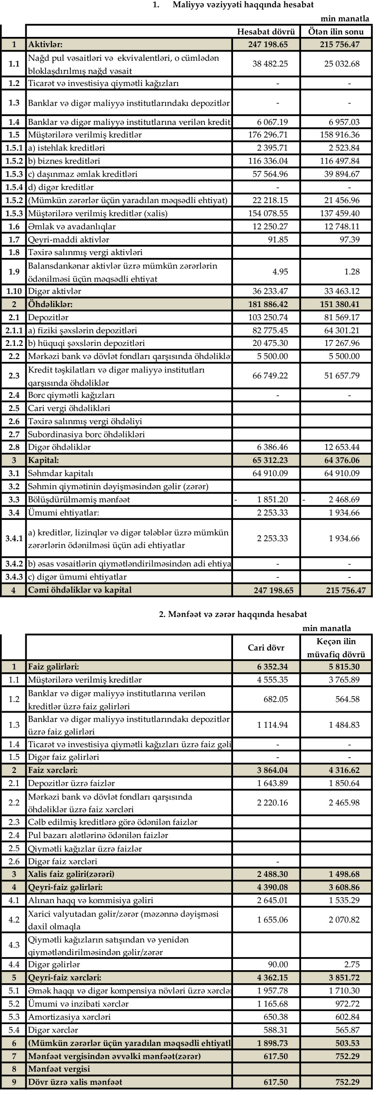 “Günay Bank” 6 aylıq vəziyyətini açıqladı