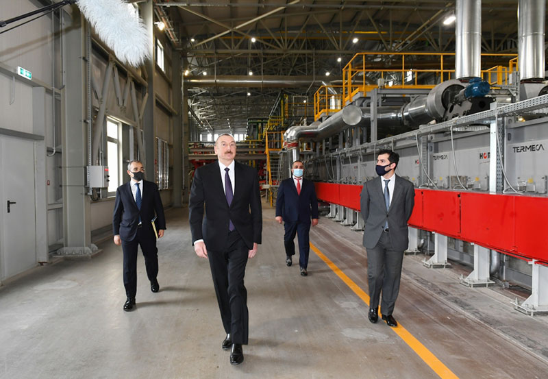 Prezident İlham Əliyev zavodun təməlini qoyub.