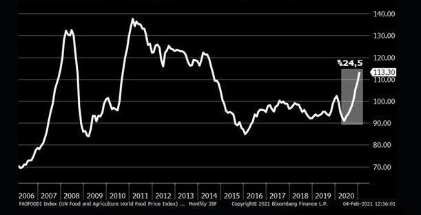 Qlobal ərzaq qiymətləri 6 ilin ən yüksək səviyyəsinə qalxıb.Birləşmiş Millətlər Təşkilatının (BM) Kənd Təsərrüfatı və Ərzaq Təşkilatı (FAO) Yanvar ayına aid Qlobal Qida Qiymət İndeksini açıqlayıb.