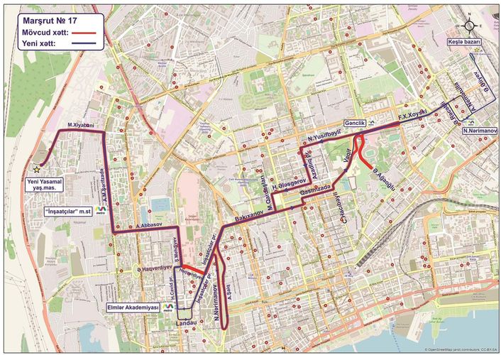 Eyni zamanda, martın 1-dən 17 nömrəli müntəzəm marşrut xətti üzrə də avtobusların hərəkət sxemi dəyişdiriləcək. Bu xətt üzrə avtobuslar dəyişiklik nəticəsində Yeni Yasamal-“İnşaatçılar”m/s-“Elmlər Akademiyası” m/s-“Gənclik” m/s-“N.Nərimanov” m/s-Keşlə bazarını əlaqələndirəcək. Belə ki, xətt üzrə avtobusların son dayanacaq məntəqəsi “N.Nərimanov” metrostansiyasından keçməklə Əliyar Əliyev küçəsi, Keşlə bazarının qarşısına dəyişdirilib.