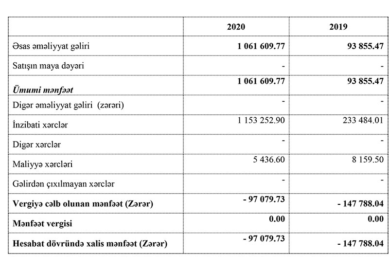Gəlirlərin artması "BirKart BOKT"ın xalis zərərinin azalmasına səbəb olub. 2019-cu illə müqayisədə 2020-ci ildə "BirKart BOKT"ın xalis zərəri 1,5 dəfə azalaraq 97 min 79 manat təşkil edib.