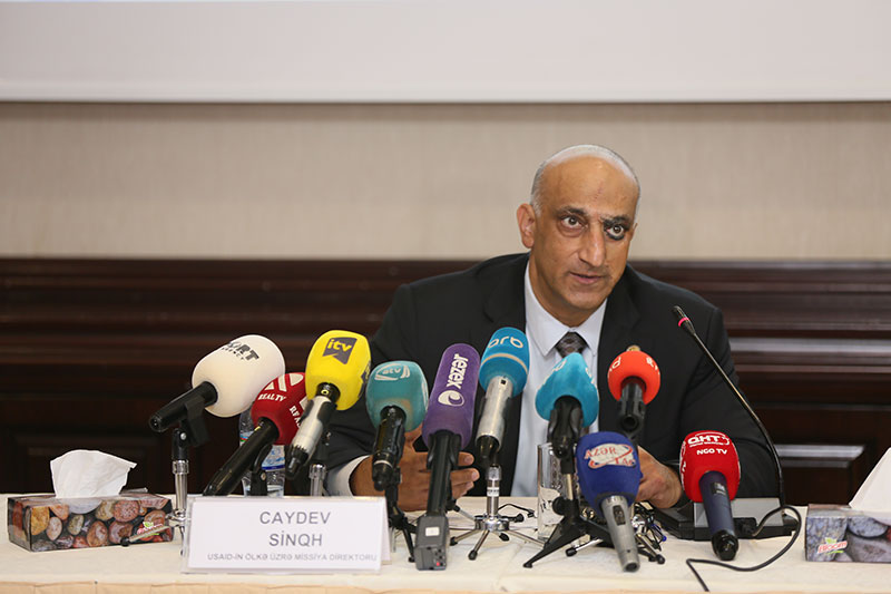 Tədbirdə salamlama sözü ilə çıxış edən USAID-in ölkə üzrə missiya direktoru cənab Caydev Sinqh təmsil etdiyi qurumun Azərbaycan hökumətinə və xalqına dost münasibətini vurğulamış, Azərbaycanda həyata keçirilən islahatlara USAID tərəfindən daima dəstək verildiyini qeyd etmişdir. Cənab Caydev oxşar platformanın ABŞ-da uğur qazandığını və eyni uğuru Azərbaycanda da görmək istədiyini bildirmişdir.