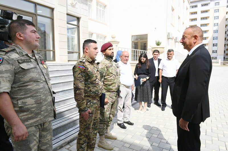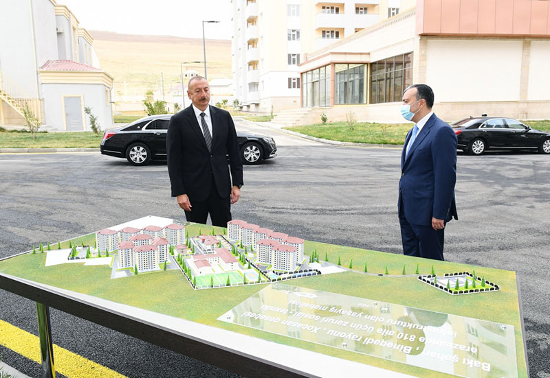 Bu gün şəhid ailələri və müharibə əlilləri üçün yeni salınmış yaşayış kompleksi təqdim edilir. Bu kompleks 810 mənzildən ibarətdir, böyük yaşayış kompleksidir. Mən indi burada yaradılmış şəraitlə tanış oldum, görürəm ki, şərait çox müsbətdir, çox yaxşıdır. Evlər işıqlı, genişdir, 620 nəfərlik məktəb, uşaq bağçası artıq fəaliyyətə hazırdır. Yəni, burada rahat yaşamaq üçün bütün imkanlar var. Burada şəhid ailələri, Qarabağ qaziləri yaşayacaqlar.