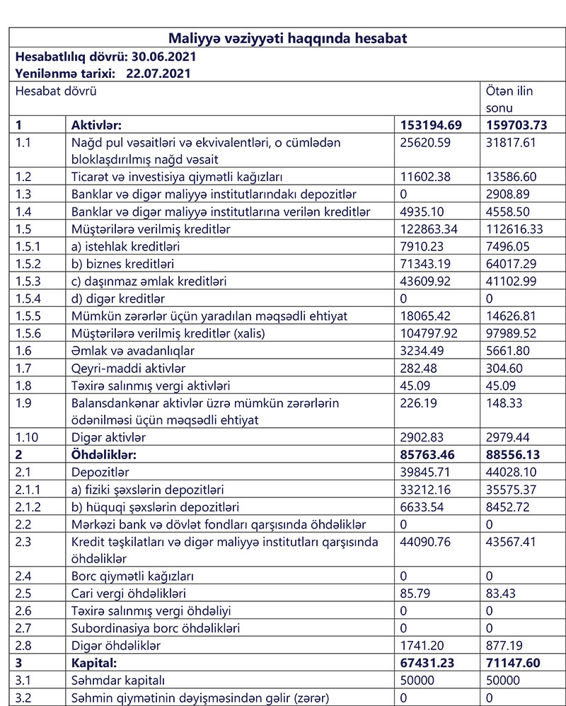 "Bank Avrasiya" ASC 2021-ci ilin yanvar-iyun dövrü üzrə maliyyə göstəricilərini açıqlayıb.