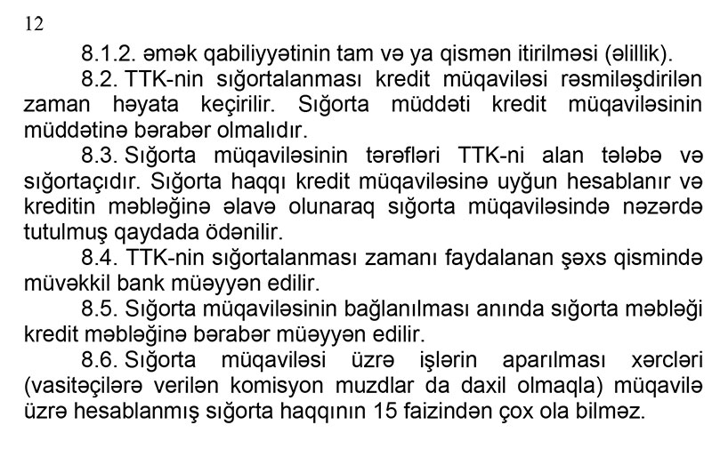 - Kredit müqaviləsində ən azı aşağıdakılar asan oxunan və aydın şəkildə göstərilir və elektron sistemə ötürülür: