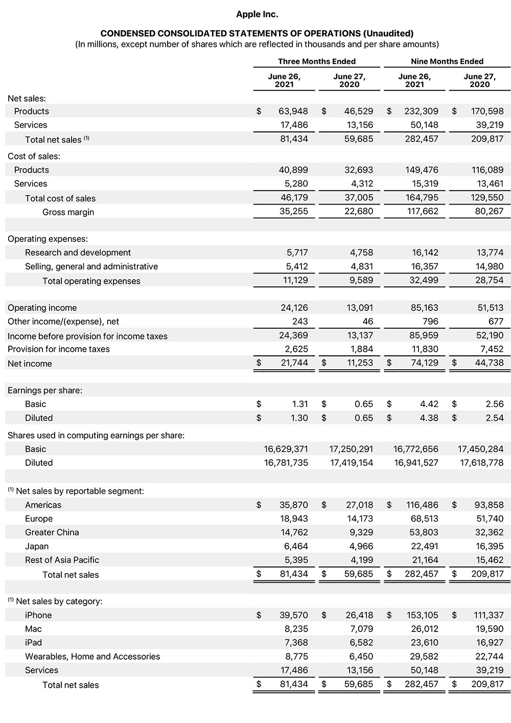 Marja Apple-ın yaydığı məlumata istinadən xəbər verir ki, aprel-iyun dövrünü balansında üçüncü rüb olaraq qəbul edən şirkətin gəliri keçən ilin eyni dövrü ilə müqayisədə 36% artaraq 81,4 milyard dollara çatıb. Şirkət, keçən ilin aprel-iyun dövründə 59,7 milyard dollar gəlir əldə etmişdi.