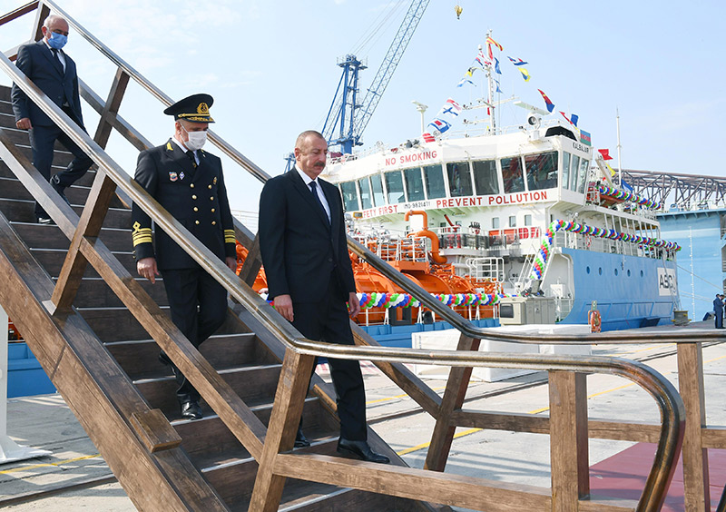 Azərbaycan Respublikasının Prezidenti İlham Əliyev Bakı gəmiqayırma zavodunda “Kəlbəcər” neftdaşıyan tankerin istismara verilməsi mərasimində iştirak edib.