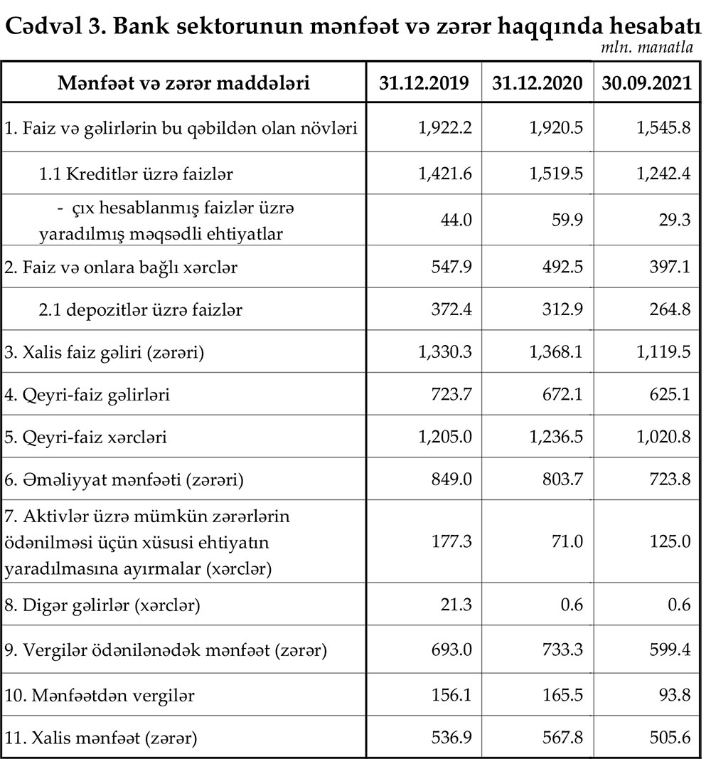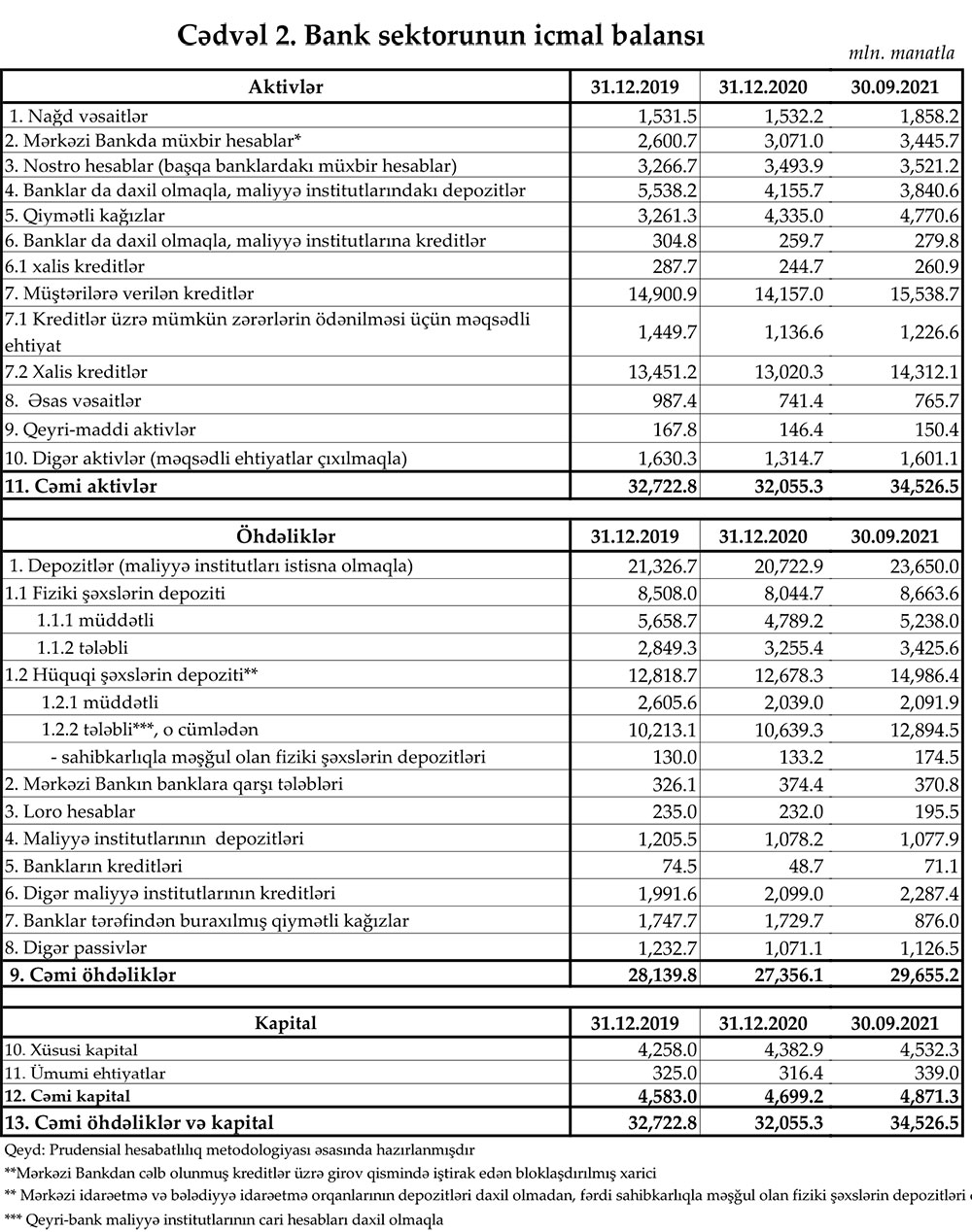 31 İyul 2021-ci il tarixinə olan bank sektorunun əsas göstəriciləri açıqlanıb.