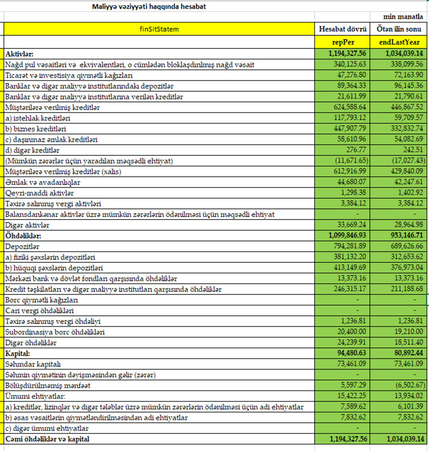 BANK BÖYÜYÜB, MÜŞTƏRİLƏRƏ VERİLMİŞ KREDİTLƏR ARTIB