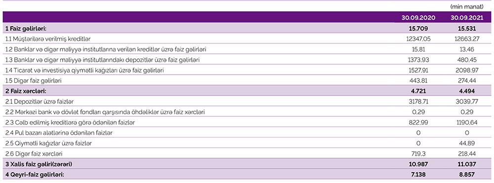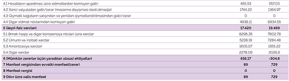 Qeyd edək ki, 2020-ci ilin 9 ayı ərzində Azər Türk Bankın cəmi əməliyyat gəlirləri 22 milyon 847 min manat, cəmi əməliyyat xərcləri 22 milyon 141 min manat təşkil etmişdi. Gəlirlər xərcləri üstələdiyindən bankın 705 min manat əməliyyat mənfəəti yaranmışdı. Bank mümkün zərərlər üçün yaradılan xüsusi ehtiyatlara 616 min manat ayırdığından həmin dövrü 89 min manat xalis mənfəət ilə başa vurmuşdu.