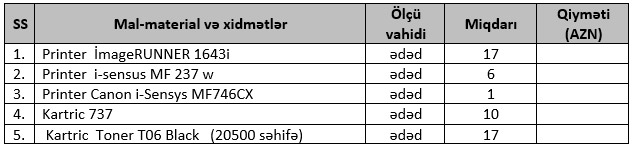 Bank “Canon” markalı printerlər və kartriclər alır - TENDER