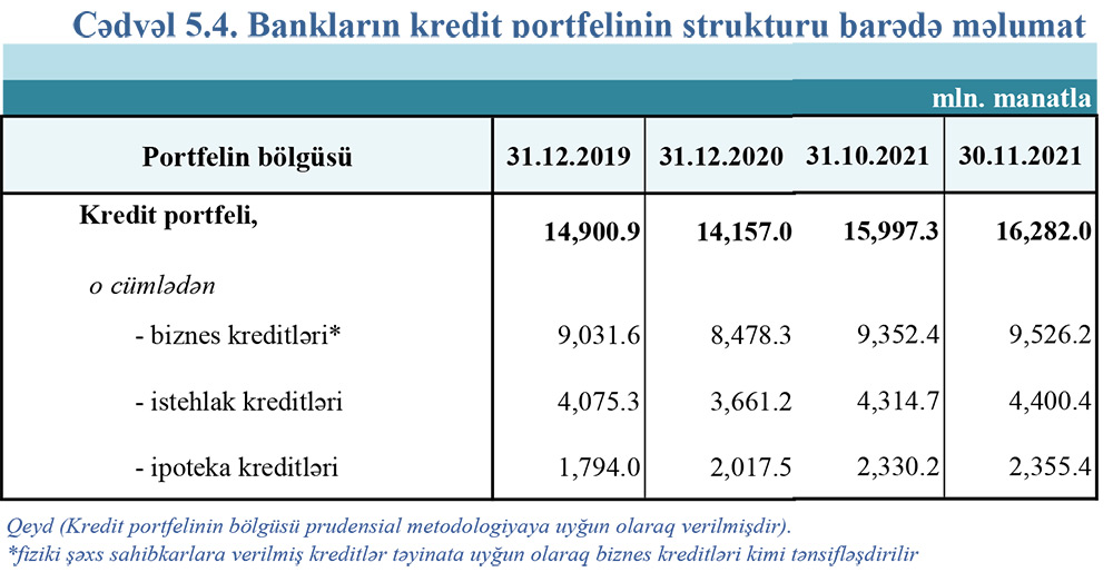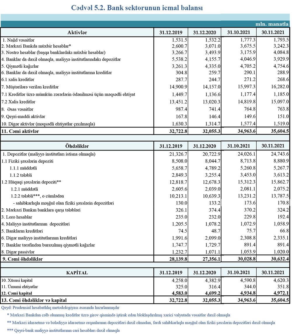2021-ci il üzrə bank icmalı30 noyabr 2021-ci il tarixinə olan bank sektorunun əsas göstəriciləri açıqlanıb.