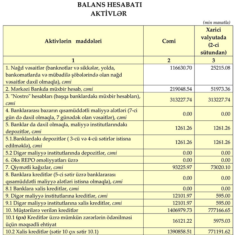 AKTİVLƏRİ 2,3 MİLYARD MANATDAN ÇOXDUR