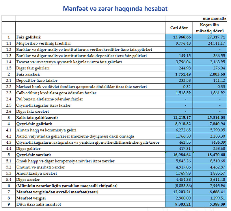 Azərbaycan bankı 9 milyon manatdan çox xalis mənfəət açıqladı