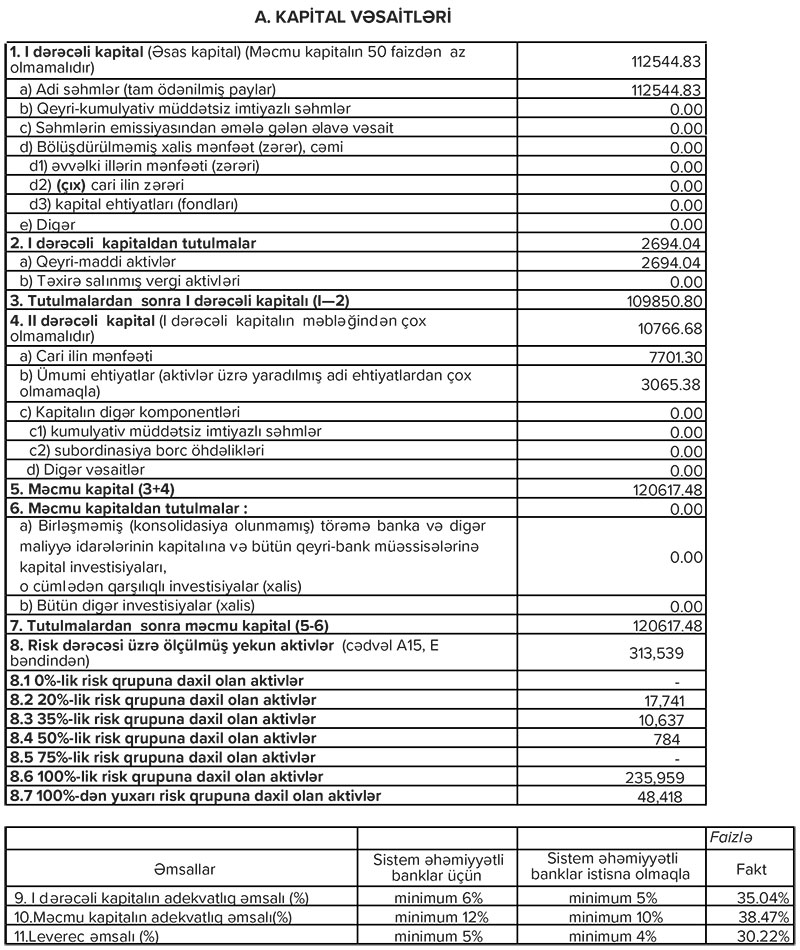 31 dekabr 2021-ci il tarixində "Expressbank" 120 milyon 617 min manat məcmu kapitala malik olub. Bank 31 dekabr 2020-ci il tarixində 118 milyon 98 min manat cəmi kapitala malik idi.