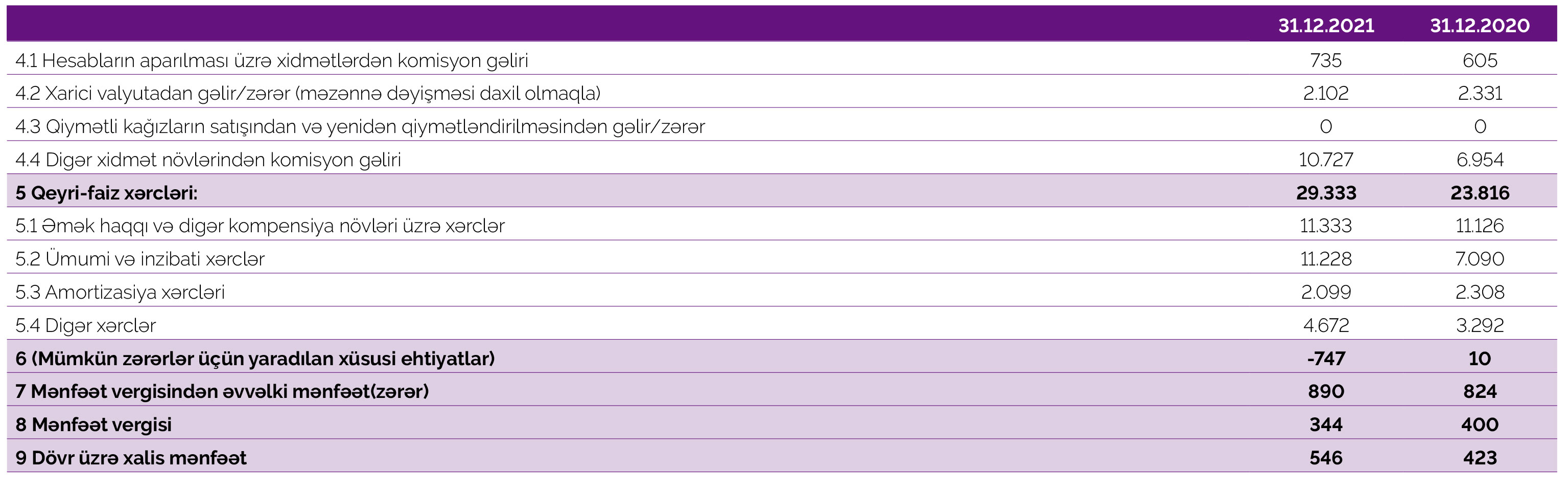 2020-ci ildə “Azər-Türk Bank”ın əməliyyat mənfəəti 833 min manat ikən, 2021-ci ildə 143 min manat təşkil edib. Həmçinin ötən il, mümkün zərərlər üçün yaradılan xüsusi ehtiyatlardan azad olmuş 747 min manat mənfəətə əlavə edilib və mənfəət 890 min manata yüksəlib. Bank ötən il 344 min manat mənfəət vergisi ödədiyindən ili 546 min manat xalis mənfəət ilə başa vurub. "Azər-Türk Bank" 2020-ci ildə 833 min manat əməliyyat mənfəətindən 10 min manat ehtiyata ayırmış və 400 min manat mənfəət vergisi ödəmişdi.
