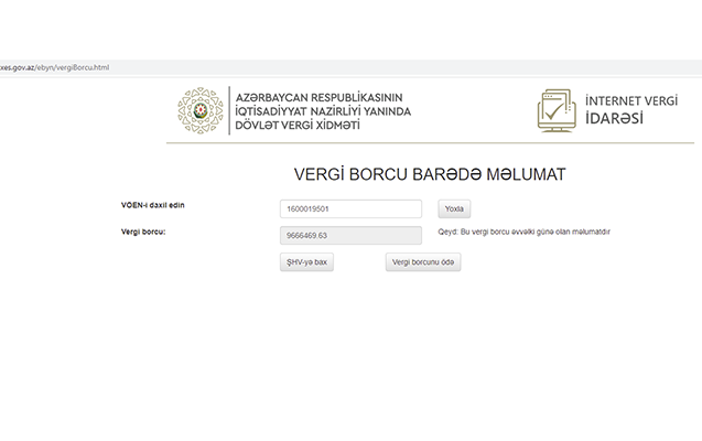 Məlumata görə, bu barədə məlumat İqtisadiyyat Nazirliyi yanında Dövlət Vergi Xidmətinin rəsmi saytında da öz əksini tapıb.