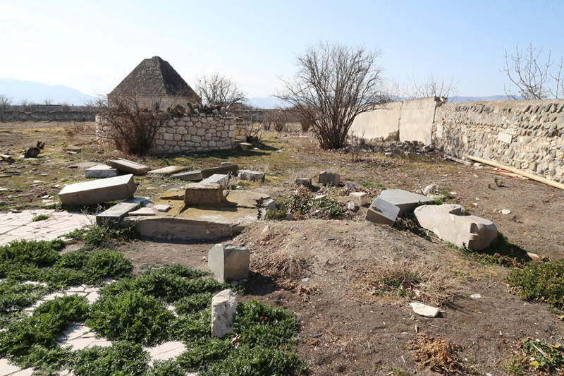 Qarabağ xanları Pənahəli xanın, İbrahimxəlil xanın və Mehdiqulu xan Cavanşirin, eləcə də onların ailə üzvlərinin - Xan qızı, şairə və xeyriyyəçi Xurşidbanu Natəvanın, şair və ictimai xadim Cəfərqulu xan Cavanşirin, xeyriyyəçi, Şuşada Aşağı və Yuxarı Gövhərağa məscidlərini tikdirmiş Gövhərnisə bəyimin, şairə, “Məclisi-üns”ün iştirakçılarından olmuş Xanbikə xanımın qəbirləri burada yerləşir. Xan sarayının yaxınlığında yerləşən və Qarabağ xan nəslinin bir çox nümayəndələrinin dəfn edildiyi İmarət qəbiristanlığı da erməni vəhşiliyinə məruz qalıb.