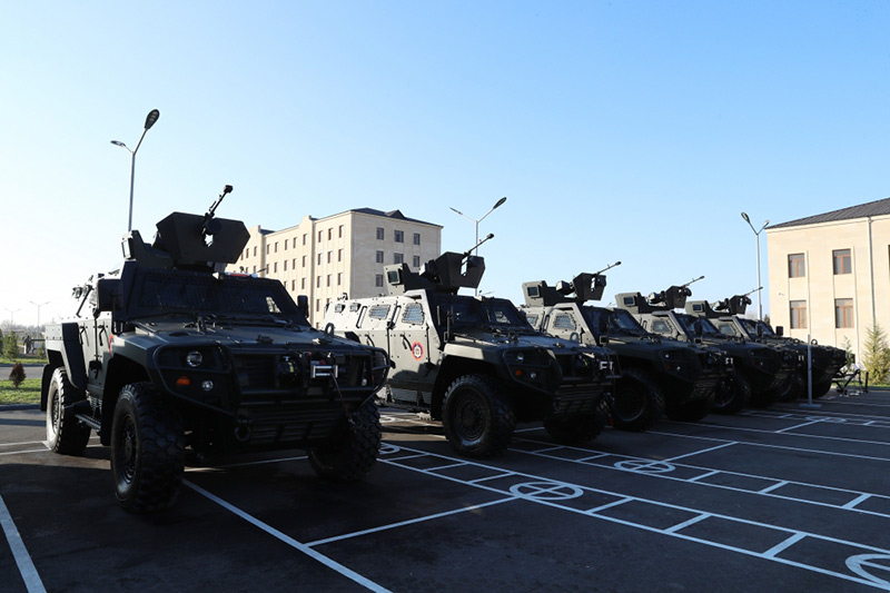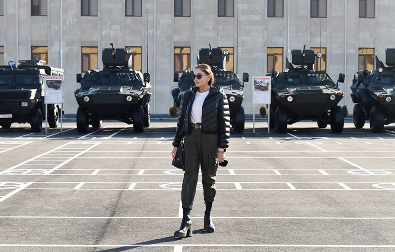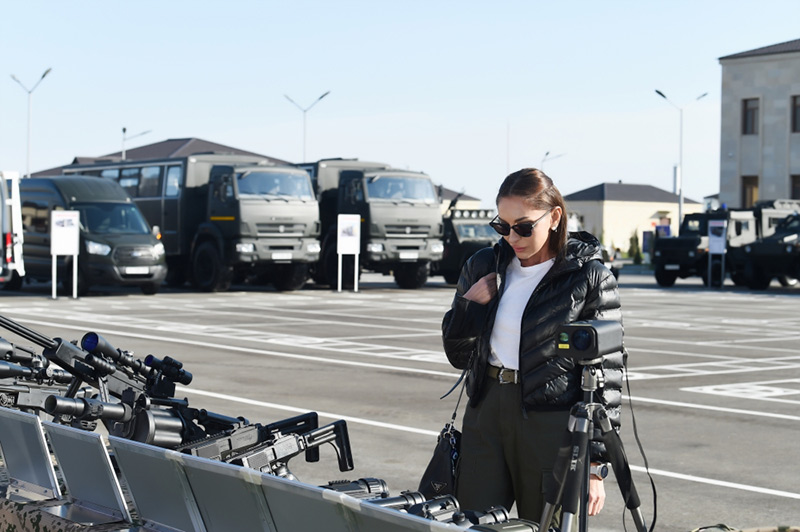 Sonra Prezident, Ali Baş Komandan İlham Əliyev Daxili Qoşunların xüsusi təyinatlıları üçün nəzərdə tutulan silah-sursata və hərbi texnikaya baxıb.