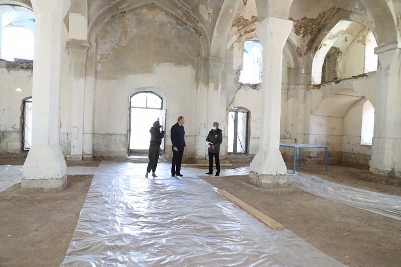 Görülmüş bütün bu işlərlə yanaşı, əlbəttə ki, biz tarixi, dini abidələrimizi də bərpa edirik. Mənə bu gün verilən məlumata görə, Ağdam Cümə məscidinin bərpa işlərinə başlanılır. Artıq bütün tədqiqatlar aparılıb və mart ayından başlayaraq məscidin həm daxilində, həm çöl hissəsində təmir-bərpa işlərinə start veriləcək. Azad edilmiş torpaqlarda hazırda 8 məscidin əsaslı təmiri, bərpası və tikintisi nəzərdə tutulub. Bütün bu istiqamətlər üzrə işlər gedir. Ağdam Cümə məscidi, Şuşada Yuxarı Gövhərağa, Aşağı Gövhərağa, Saatlı məscidləri əsaslı təmir edilir. Şuşa şəhərində yeni məscidin inşasına start verilib. Zəngilan şəhərində, Hadrutda və Daşaltıda məscidlərin yenidən qurulması və tikintisi prosesi başlamışdır.