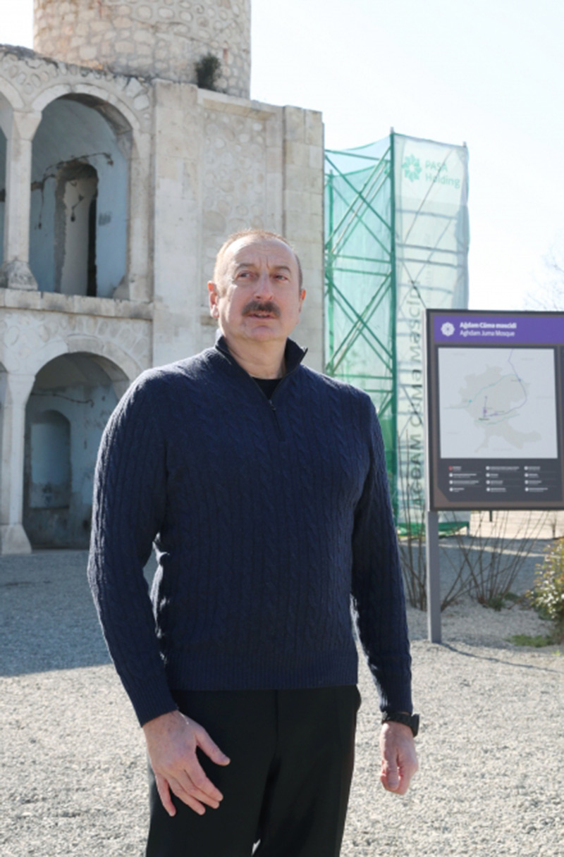 Fevralın 13-də Azərbaycan Respublikasının Prezidenti İlham Əliyev və birinci xanım Mehriban Əliyeva Heydər Əliyev Fondu tərəfindən Ağdam Cümə məscidində görülən bərpa-restavrasiya işlərinin gedişi ilə tanış olublar.