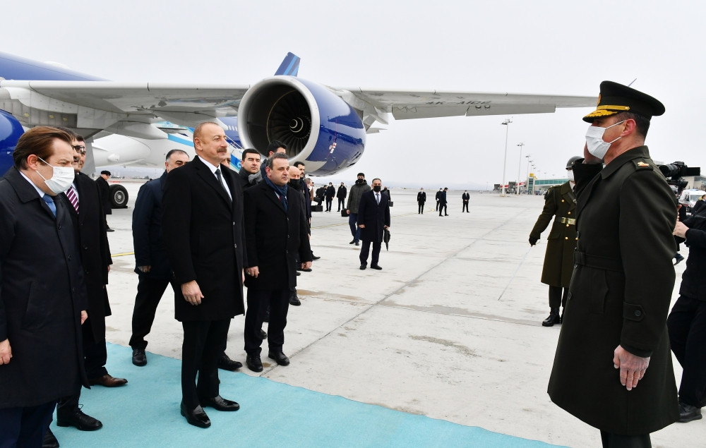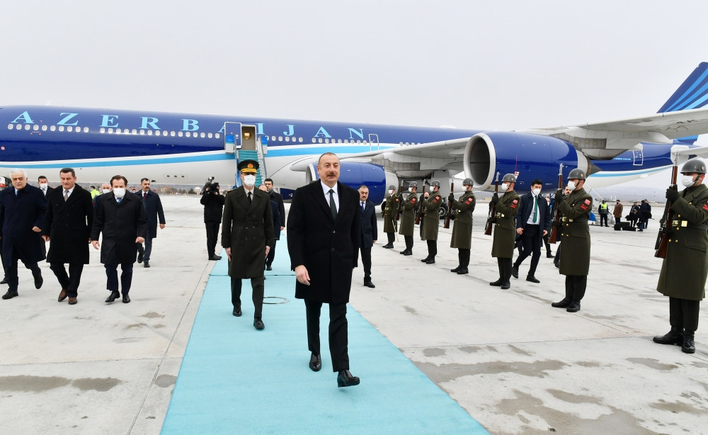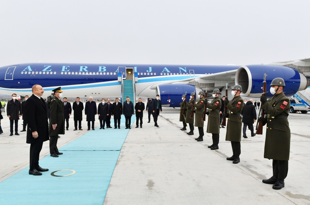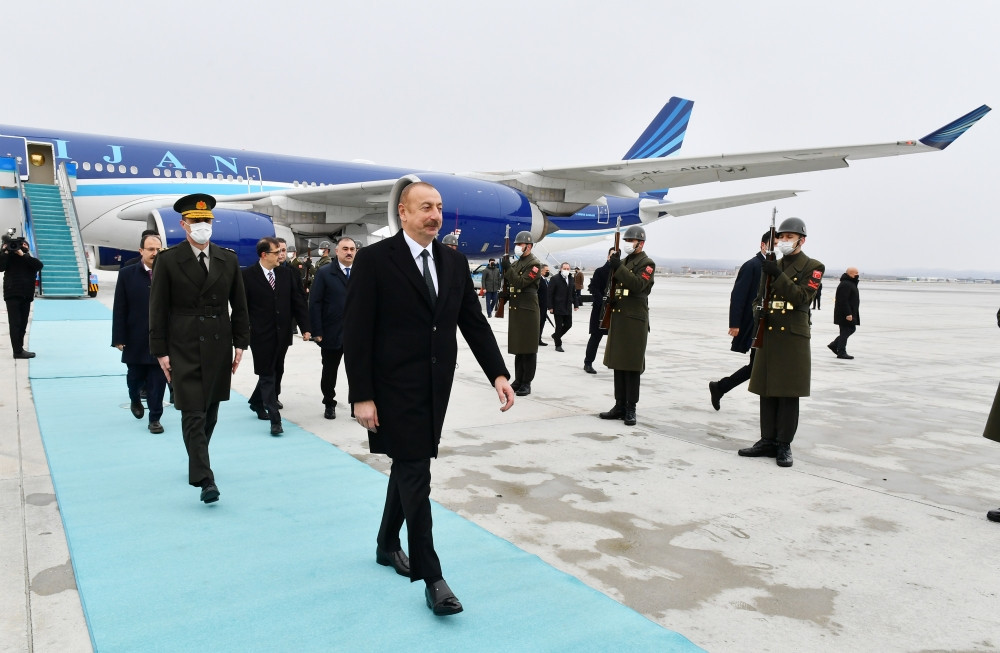 Hər iki ölkənin Dövlət bayraqlarının dalğalandığı Ankaranın Esenboğa Hava Limanında dövlət başçısının şərəfinə fəxri qarovul dəstəsi düzülmüşdü.