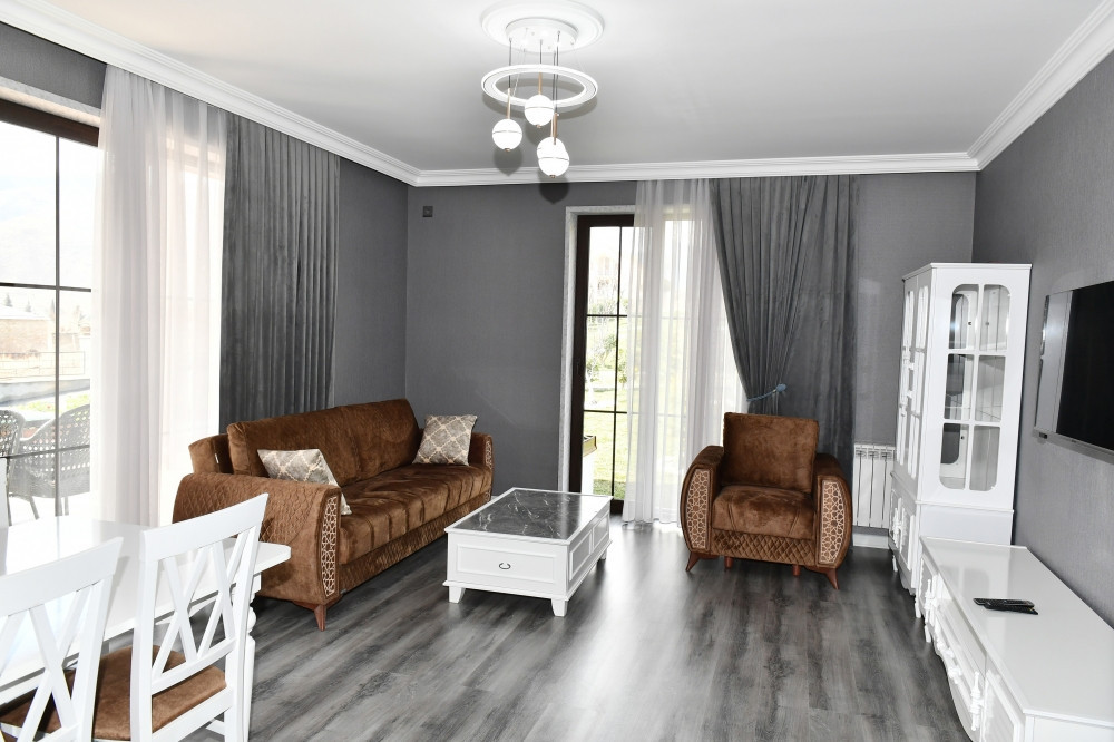 Evin otaqları yüksək səviyyədə və müasir dizaynla bərpa olunub. Həyətyanı sahə abadlaşdırılıb, ərazidə ağaclar əkilib. Fərdi evlərin yerləşdiyi məhəlləyə işıq və su xətləri çəkilib, yola asfalt örtüyü döşənib.