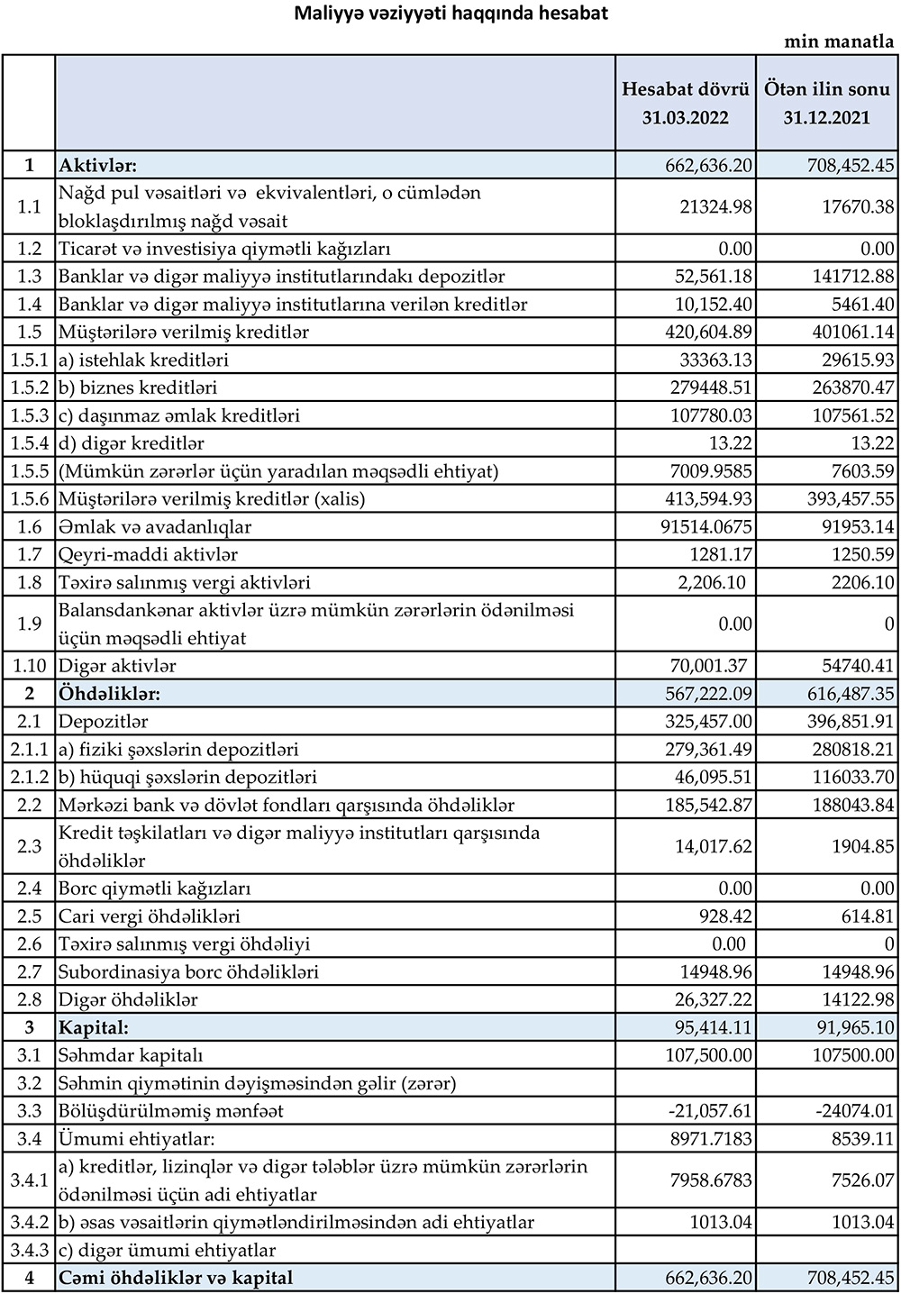 31 Mart 2022-ci il tarixində “Muğanbank”ın cəmi depozit portfeli 325 milyon 457 min manat təşkil edib ki, bunun da 279 milyon 361 min manatını fiziki şəxslərin depozitləri olub. Ötən ilin sonunda “Muğanbank”ın cəmi depozit portfeli 396 milyon 852 min manat təşkil etmişdi. Bankın cəmi depozit portfelində dəyişiklik hesabat tarixinə hüquqi şəxslərin carı hesablarda olan qalıqlarla bağlıdır. Qeyd etmək istərdik ki, Bank sağlam korporativ müştəri bazasına mövcuddur.