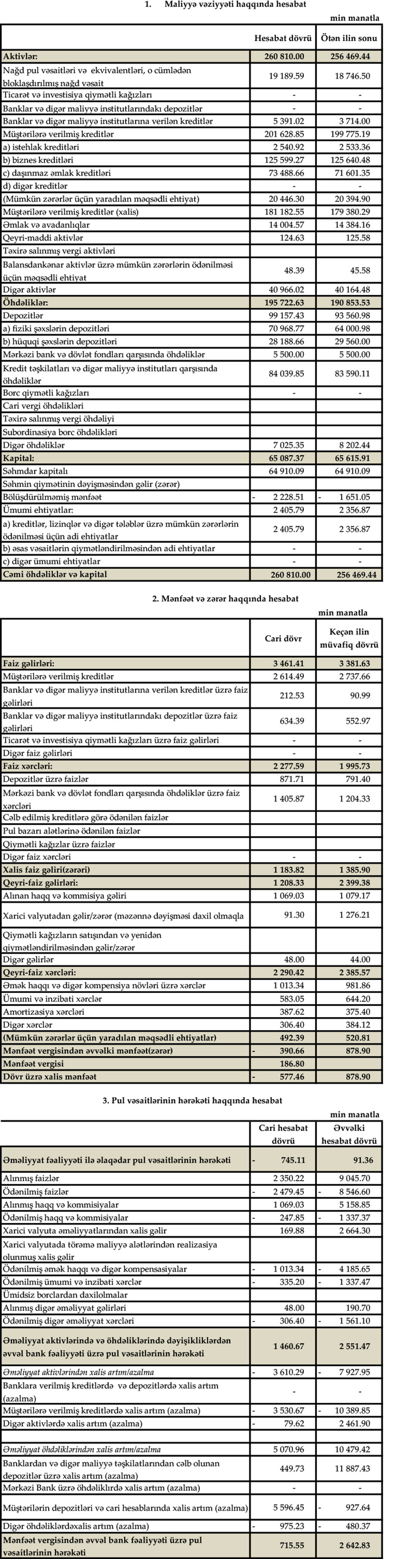 Eyni zamanda Bankın kredit portfelində də, ilin əvvəli ilə müqayisədə 3 531 000 manat və ya 2 faiz artım baş vermişdir.