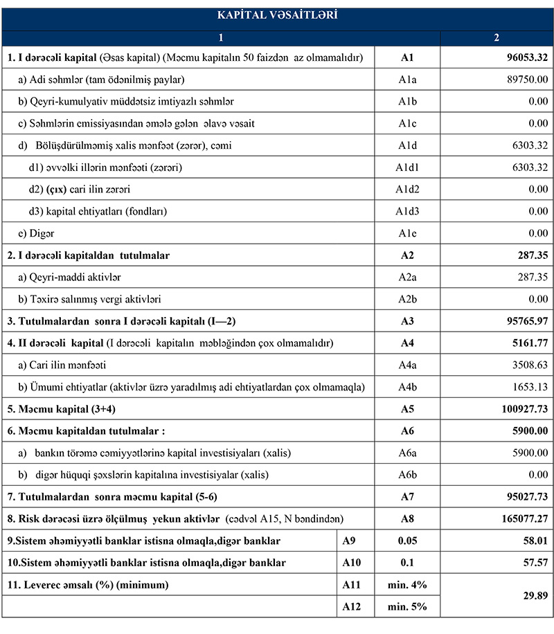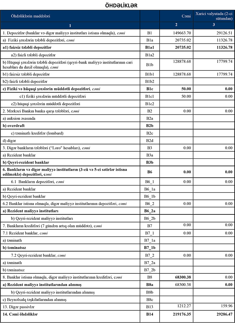 Bankın cəmi aktivləri isə ötən ilin sonundakı 343 milyon 757 min manatdan 320 milyon 390.1 min manata geriləyib.