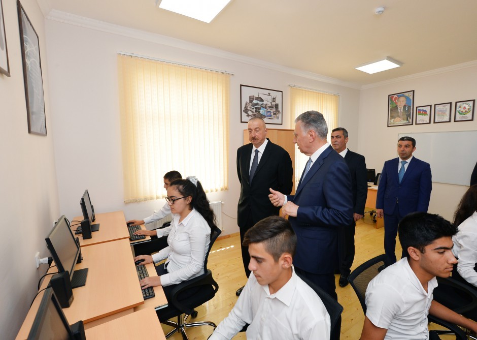 Daha sonra dövlətimizin başçısı yeni inşa olunan 96 şagird yerlik məktəblə tanış oldu. Baş nazirin müavini, Qaçqınların və Məcburi Köçkünlərin İşləri üzrə Dövlət Komitəsinin sədri Əli Həsənov və Cəbrayıl Rayon İcra Hakimiyyətinin başçısı Kamal Həsənov Prezident İlham Əliyevə məlumat verdilər ki, Məcburi Köçkünlərin Sosial İnkişaf Fondu tərəfindən görülən işlər nəticəsində kənddə küçələrdə işıqlandırma sistemi qurulub, su, qaz, telefon xətləri çəkilib, subartezian quyusu qazılıb, 100 kubmetrlik su anbarı inşa edilib. Yollara və səkilərə asfalt örtüyü salınıb, yaşıllaşdırma işləri aparılıb. Kənddə müasir standartlara cavab verən yeni yarımstansiya inşa edilib. Yeni Komplekt Transformator Məntəqəsi, həmçinin subartezian quyusuna xidmət edəcək transformator quraşdırılıb.
