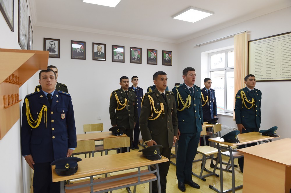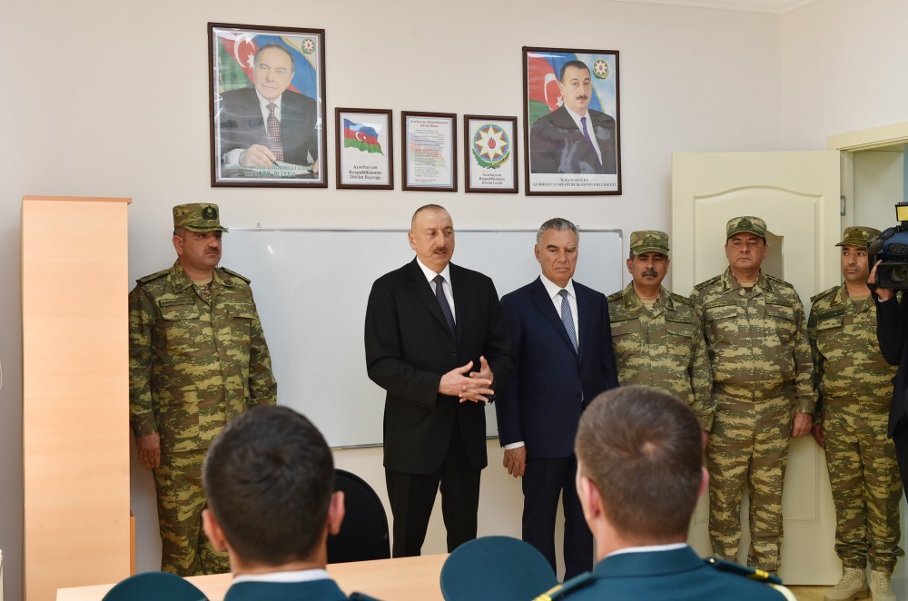 Məktəbdə olarkən Prezident İlham Əliyev hərbi məktəblərin kursantlarının bir qrupu ilə görüşdü.