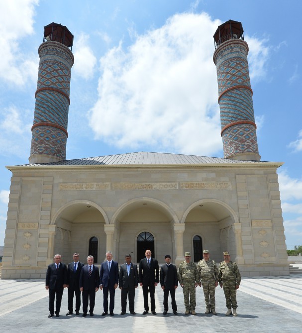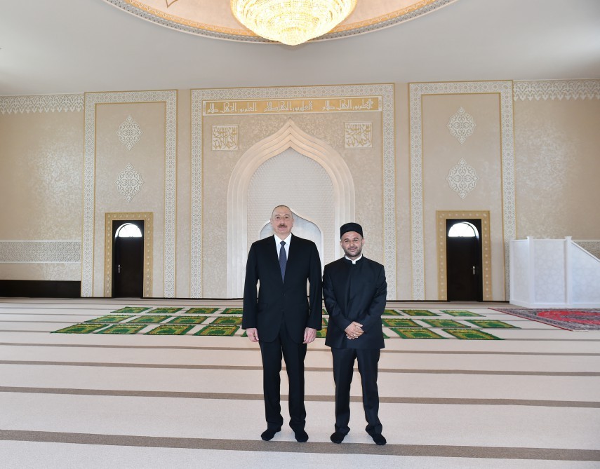 Məsciddə yaradılan şəraitlə tanış olan dövlətimizin başçısına məlumat verildi ki, 50 sot ərazidə inşa edilən məscidin minarələrinin hündürlüyü 26 metrdir. Azərbaycan və Şərq memarlığının nadir incilərindən sayılan tarixi Şuşa məscidinin bənzəri olan bu dini ibadətgahda dindarlar üçün hər cür şərait yaradılıb. Bütün bunlar göstərir ki, Prezident İlham Əliyev ölkədə milli-mənəvi dəyərlərin qorunub saxlanmasında müstəsna xidmətlər göstərir. Dövlətimizin başçısı İslam dininin xalqımızın həyatındakı rolunu, onun milli kimliyimizin formalaşmasındakı əhəmiyyətini nəzərə alaraq ölkədəki dini ibadətgahların qorunmasında, onların gələcək nəsillərə çatdırılmasında əsl fədakarlıq nümayiş etdirir.