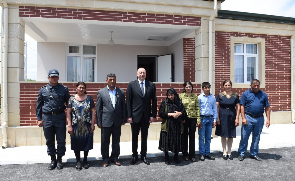 Sonra Prezident İlham Əliyev Cocuq Mərcanlı kəndinin bərpası çərçivəsində görülən işlərlə tanışlıq zamanı kənd sakini Oqtay Həziyevin evində oldu. Səkkiz nəfərlik bu ailə təhlükəli olmasına baxmayaraq, 1994-cü ilin aprelindən kənddə yaşayır və bütün məcburi köçkünlərə nümunə olmaqla yanaşı, əsl vətənpərvərlik və fədakarlıq göstərir. Birinci mərhələdə kənddə 10 hektar ərazidə 50 fərdi evin və müvafiq infrastrukturun tikintisi aparılıb. Tikilmiş evlərə Cəbrayıl rayonunun Cocuq Mərcanlı kəndindən olan və əsasən Bakı şəhərində müvəqqəti məskunlaşmış məcburi köçkünlər köçürüləcək. Ümumi sahəsi 3850 kvadratmetr olan mənzillərin 20-si ikiotaqlı, 25-i üçotaqlı, 5-i isə dördotaqlıdır.