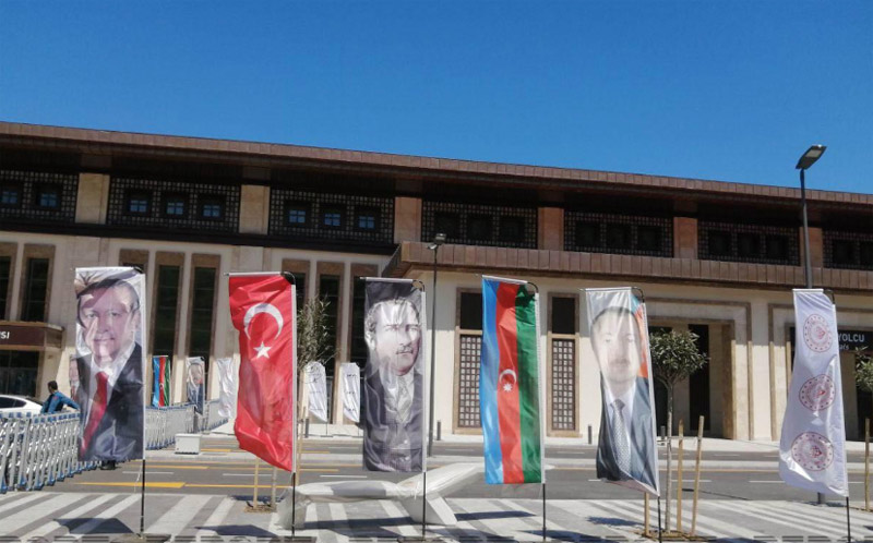 Belə ki, hava limanının ərazisinə, şəhərin müxtəlif yerlərinə Azərbaycan Prezidenti İlham Əliyev, Türkiyə dövlətinin qurucusu Mustafa Kamal Atatürk və Türkiyənin dövlət başçısı Rəcəb Tayyib Ərdoğanın portretləri asılıb, iki ölkənin bayraqları və müxtəlif şüarlarla bəzədilib.