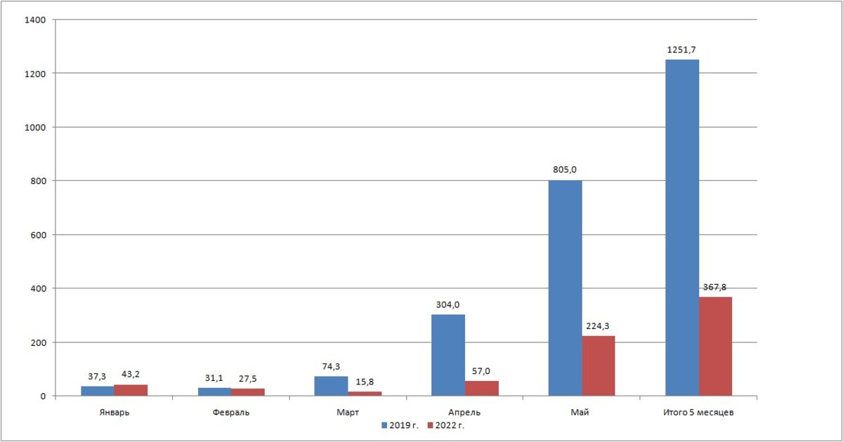 2022-ci ilin may ayında Rusiyadan Antalyaya turist axını 2019-cu ilin eyni dövrü ilə müqayisədə 3,6 dəfə azalaraq 224,3 min nəfər olub.