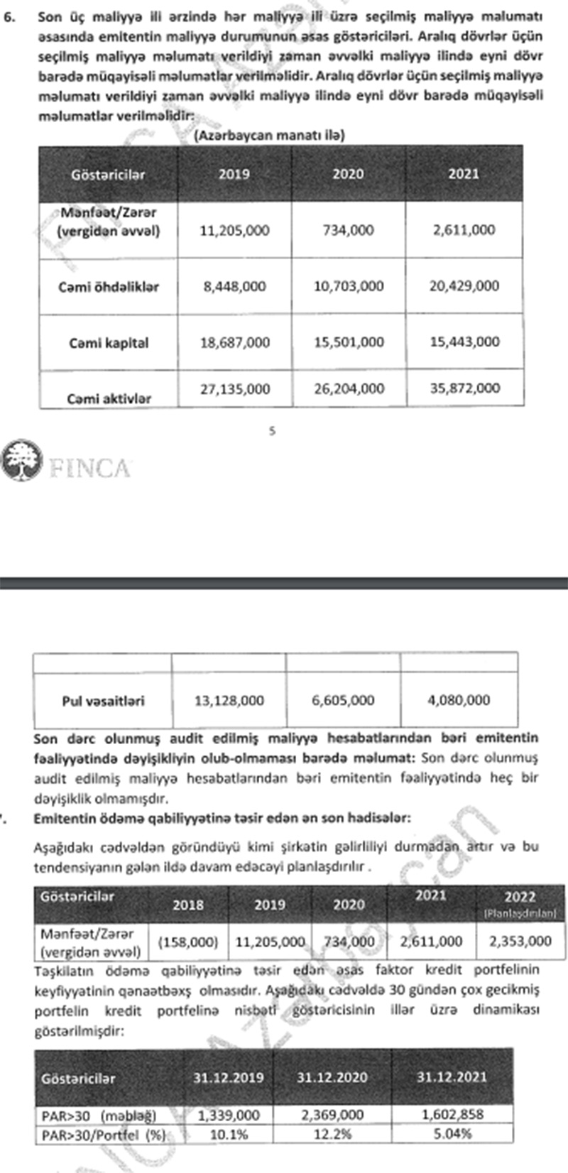 "Finca Azərbaycan" Qeyri-Bank Kredit Təşkilatı MMC 2022-ci ildə 2 milyon 353 min manat xalis mənfəət gözləyir.