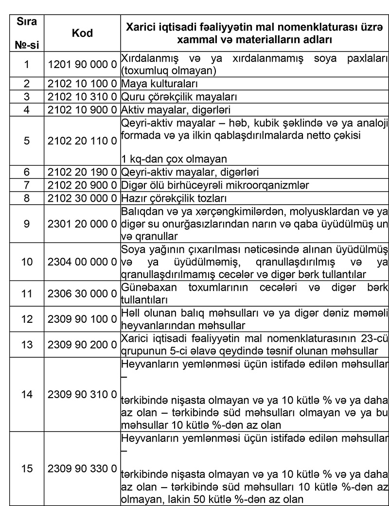 Marja xəbər verir ki, Fərman ilə “İdxalı əlavə dəyər vergisindən azad edilən xammal və materialların siyahısı” təsdiq edilib.