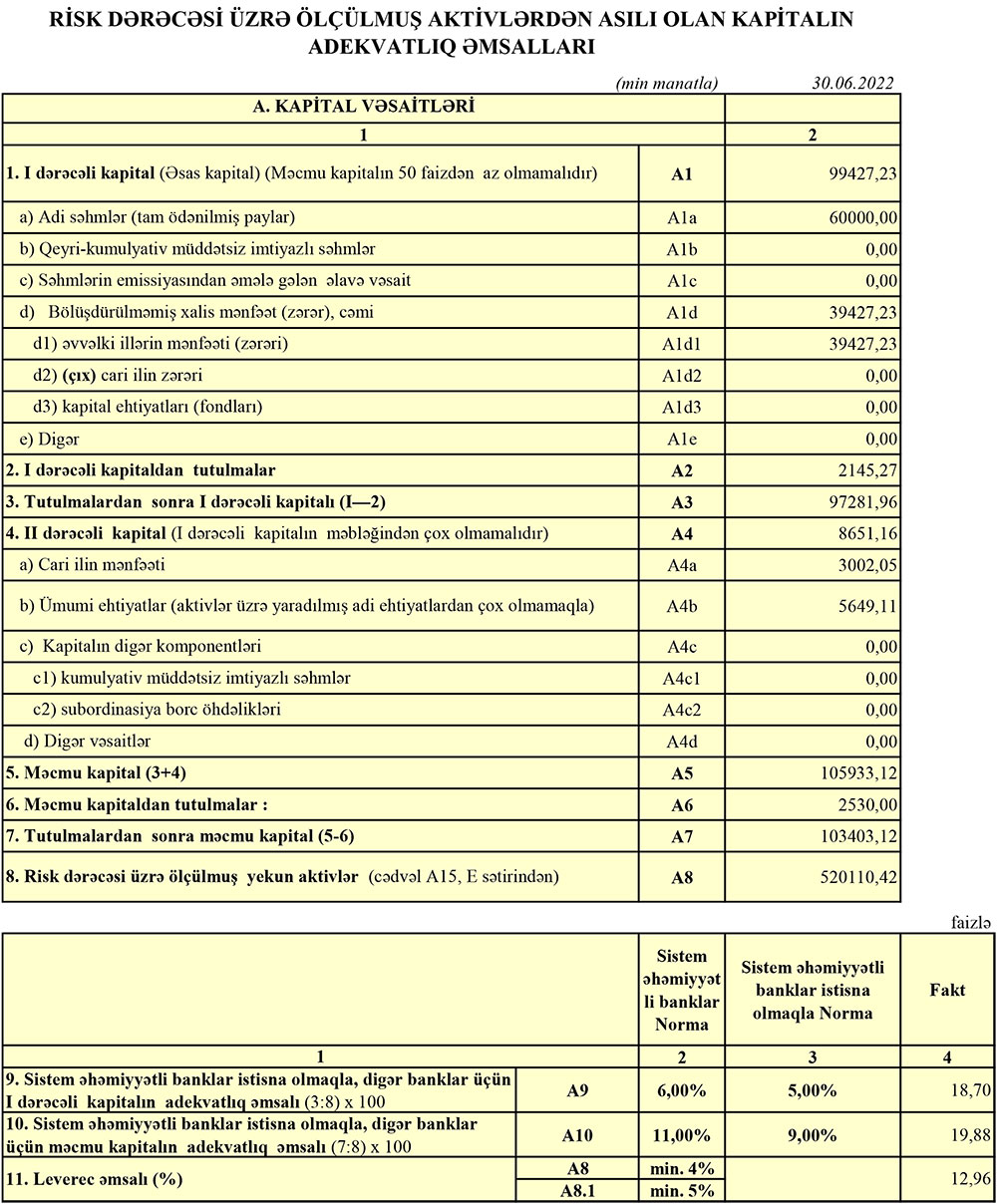 Qeyd edək ki, 2021-ci ilin yanvar-iyun dövründə "Azərbaycan Sənaye Bankı" ASC-nin cəmi əməliyyat gəlirləri 17 milyon 324 min manat, cəmi əməliyyat xərcləri 15 milyon 445 min manat, əməliyyat mənfəəti 1 milyon 879 min manat, aktivlər üzrə mümkün zərərlərin ödənilməsi üçün xüsusi ehtiyata ayırma 483 min manat, ödənilmiş məmfəət vergisi 283 min manat təşkil etmişdi.