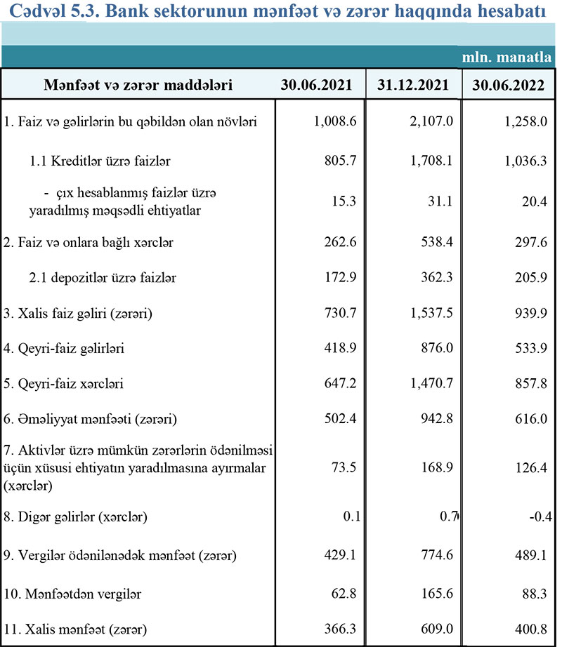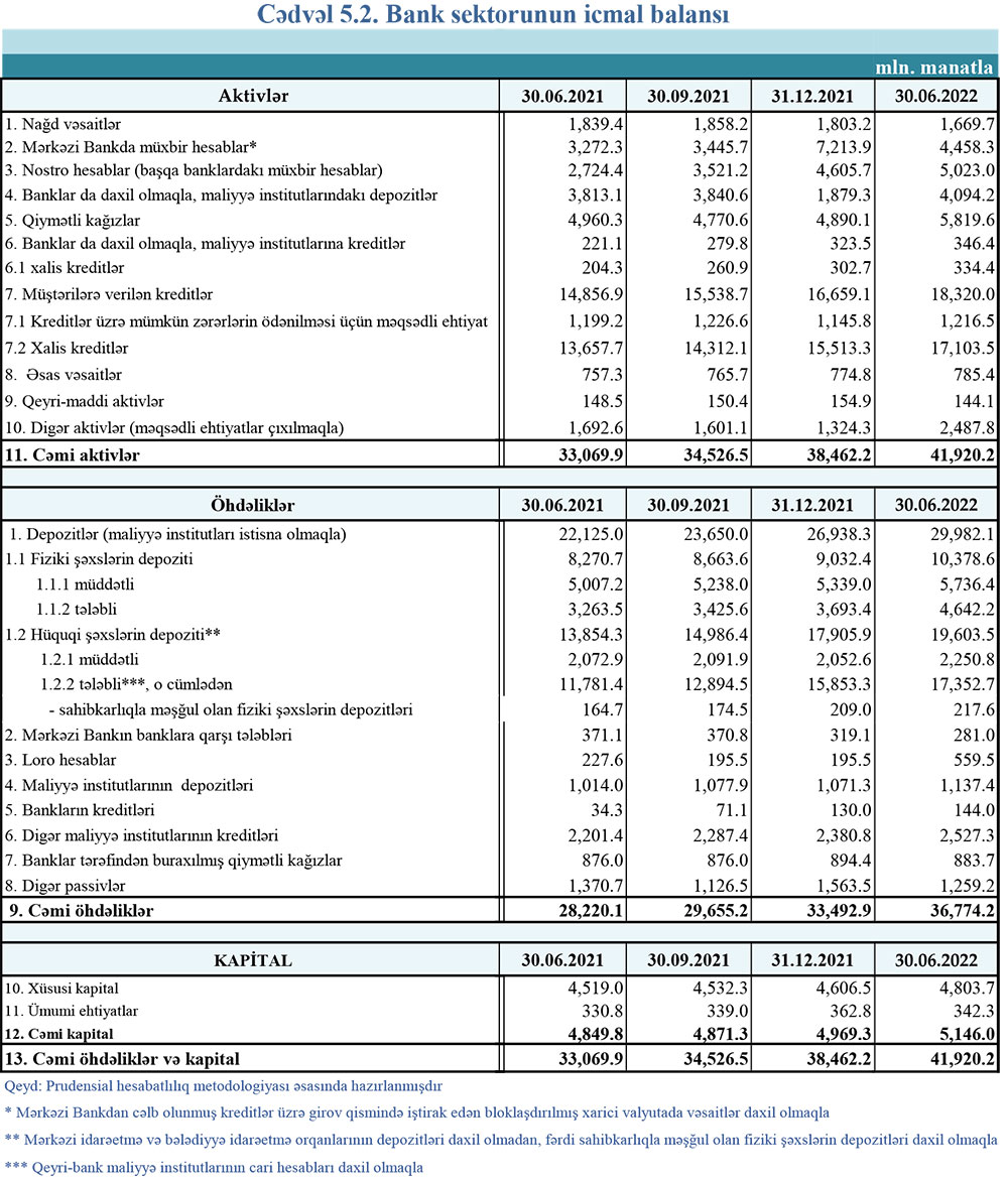30 iyun 2022-ci il tarixinə olan bank sektorunun əsas göstəriciləri açıqlanıb.